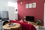 Welcome to your home away from home! This bright and stylish one-bedroom apartment comfortably sleeps up to 5 guests, making it ideal for families, business travelers, or small groups. Enjoy a spacious layout with thoughtful touches throughout—perfect for relaxing after a day of exploring or working remotely. With a fully equipped kitchen, cozy living area, and modern amenities, you’ll have everything you need for a comfortable and convenient stay.